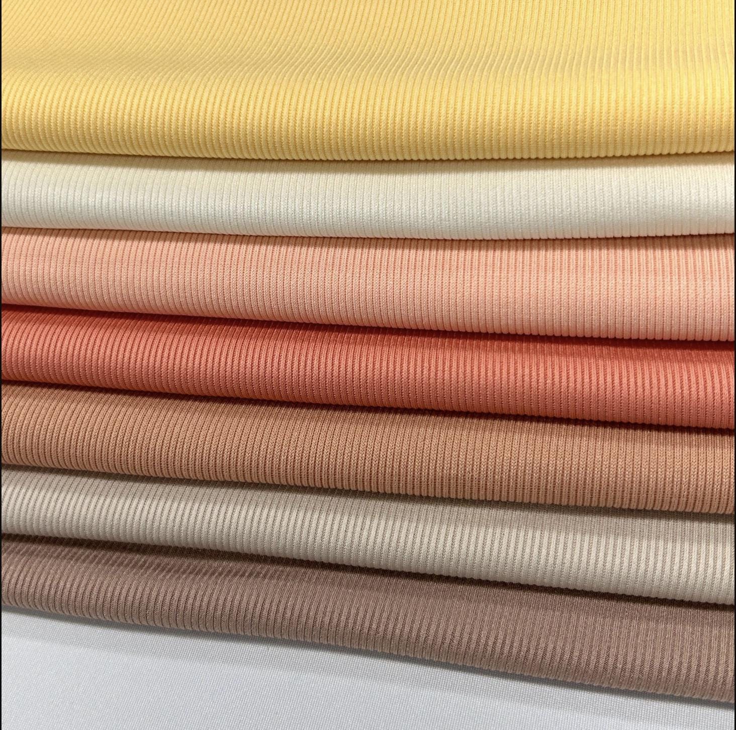 fabric is breathable and lightweight. It has textured 1 x 2 vertical striped ribs and is commonly used in neckbands, cuffs and waistbands. ribbed knit offers an ample amount of stretch and a nice drape. It can be used for a variety of apparel and accessories such as tops, dresses, skirts, loungewear, pajamas and more.